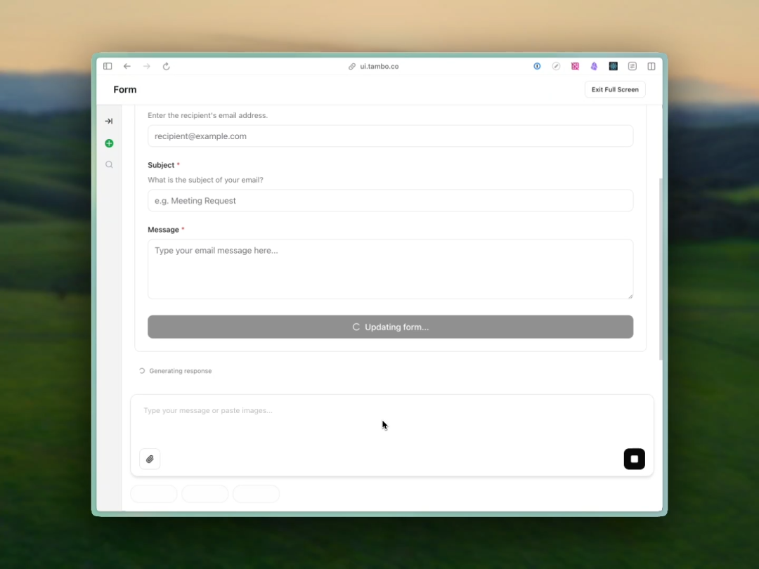 // Register your chart component onceconst components: TamboComponent[] = [{ name: "Graph", description: "Displays data as charts", component: Graph, propsSchema: z.object({ data: z.array(...), type: z.enum(["line", "bar", "pie"]) })}];// 10 lines of registration → infinite use cases这第三点,很多人会忽略,但它非常关键。
