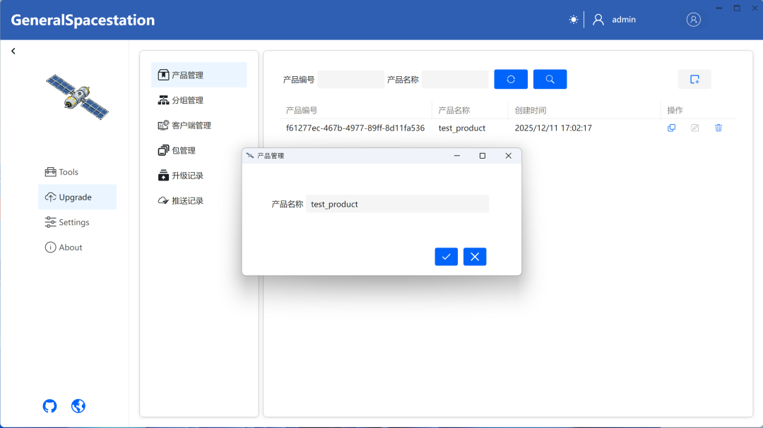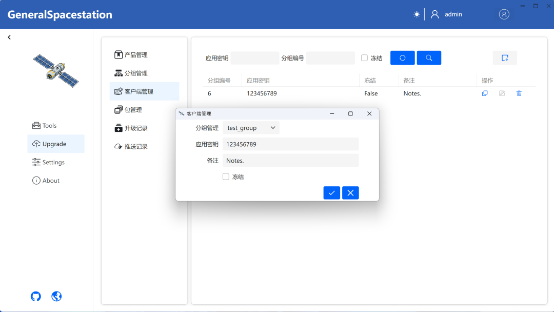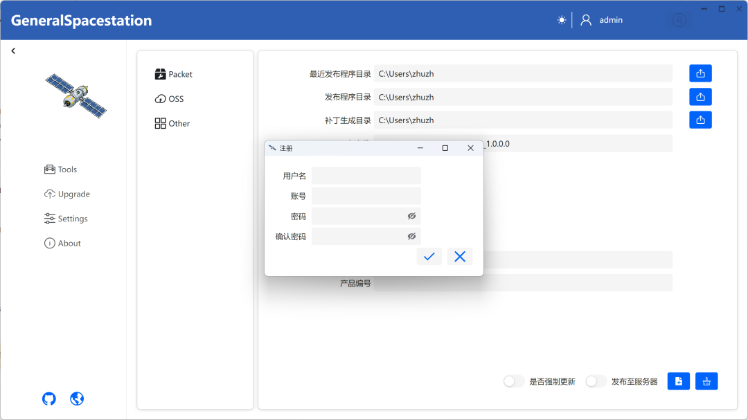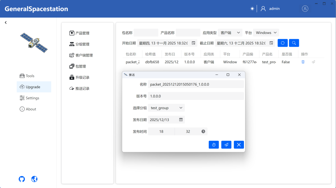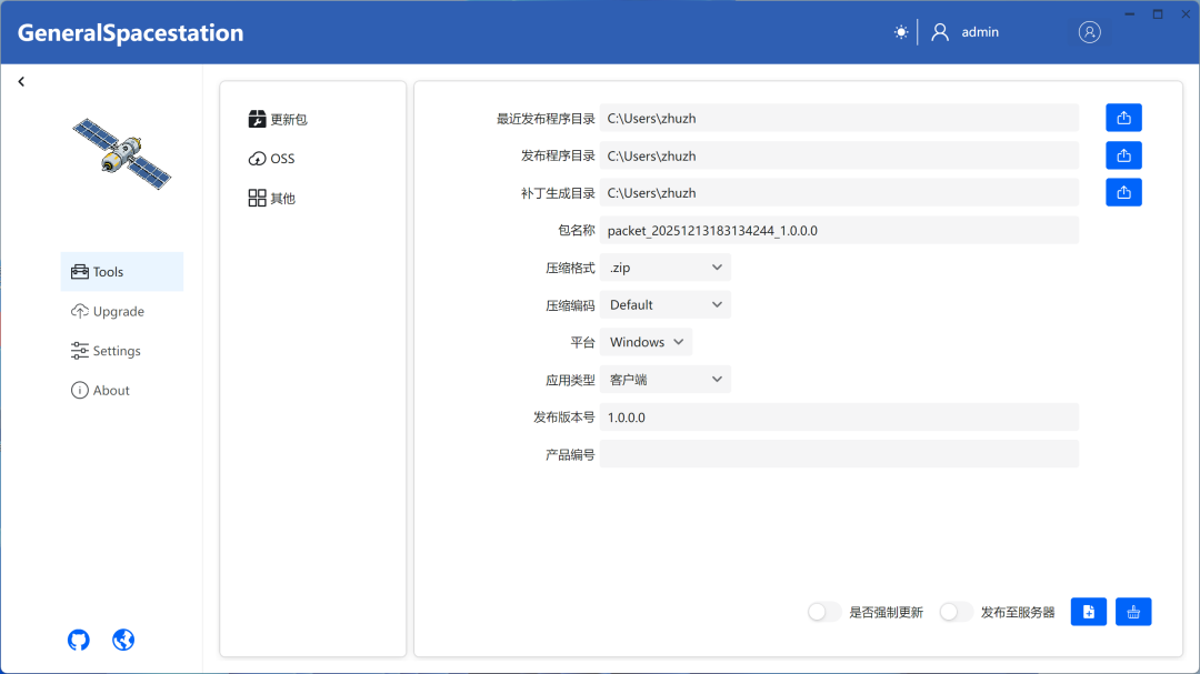 TSLH™ GeneralSpacestation全栈采用.NET和Avalonia、Semi.Avalonia、Ursa.Avalonia等技术,可便捷实现客户端应用升级管理,支持分区域编组推送更新。支持升级补丁包、升级和推送升级记录管理、升级补丁包制作、OSS模式简易升级。整套服务将部署到您内部服务器,无需担忧托管风险。