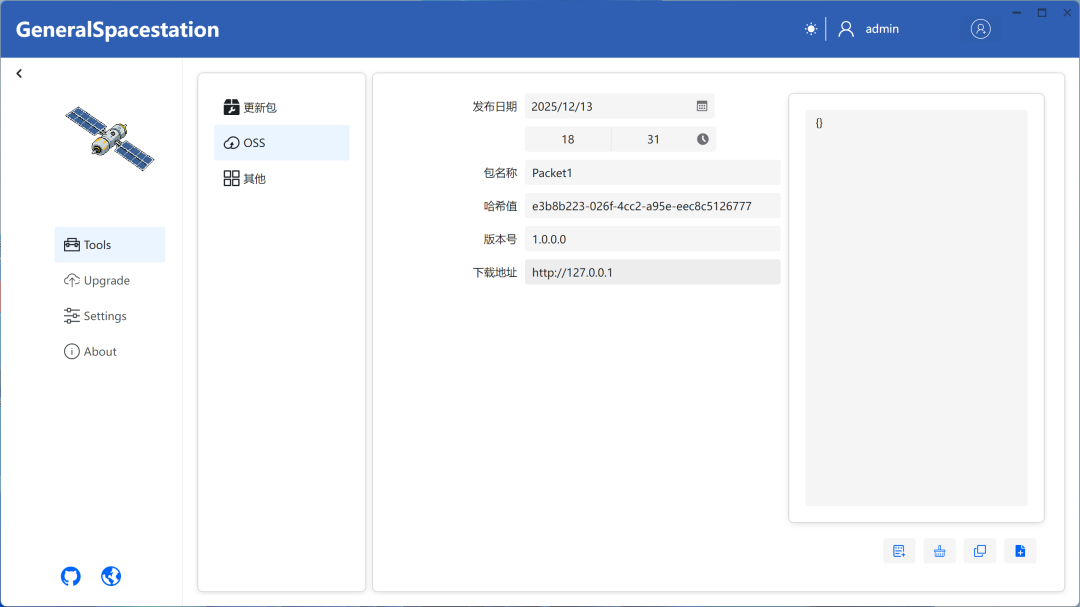 在OSS模式升级模式下可以快捷帮助开发者制作版本信息配置文件。