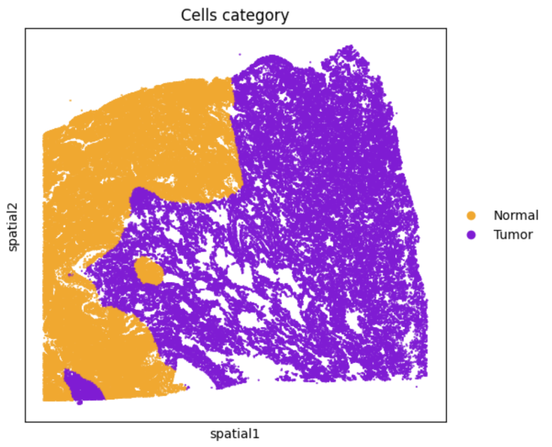 利用K-近邻算法 (KNN) 的思想。如果一个细胞是“肿瘤细胞”,但是离它最近的N个邻居细胞中里出现了“正常”细胞(或者反过来),那么我们就可以确认这个细胞就处于交界区,我们可以给它打个boundary cell的标签。