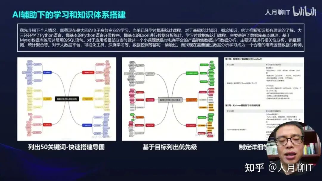 这个我在知乎和公众号也专门写过文章。大家一定要注意,有了AI工具的辅助,我们可以更加方便快速地学习。对于任何一个陌生的新领域,你都可以让AI先输出这个新领域的40到50个核心关键词,然后基于这些关键词分为两级到三级目录,让AI输出一个完整的思维导图。这是第一步。