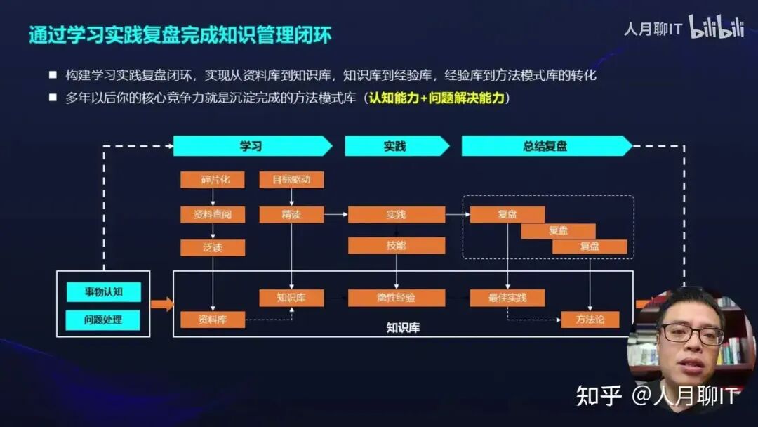 它不是简单的到处收集一些资料放到硬盘上就形成了知识体系。那只是一个用于搜索的资料库,无法变成个人经验。知识体系的构建一定是一个动态的过程,也就是我经常强调的学习实践复盘的持续迭代。通过这个持续迭代,将资料库转成经验库,再将经验库转成最终的方法模式库,这才是我们真正需要的知识体系。