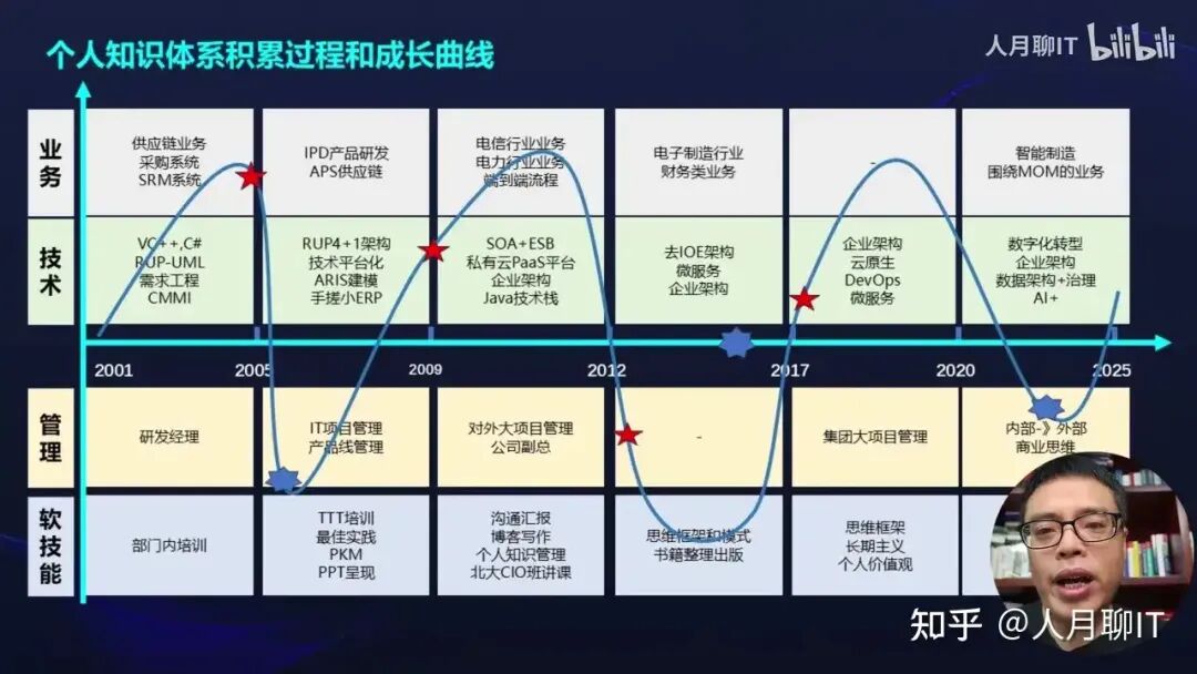 第三个点,当时我也讲了一下:我个人从2001年参加工作,24年来整个个人知识体系能力成长的成长曲线。