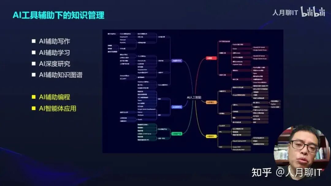 所以在AI时代,大家的思考一定是比原来多了,而不是比原来少了。 包括在前面我也给出了一个我最近大半年用了相关AI知识工具的思维导图。