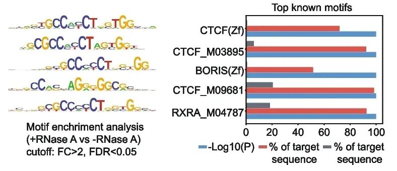 图1来源:Hyle, J., Qi, W., Djekidel, M. N., ..., Li, C. (2025) Deciphering the role of RNA in regulating CTCF’s DNA binding affinity in leukemia cells. Genome Biology 26(1). https://doi.org/10.1186/s13059-025-03582-x