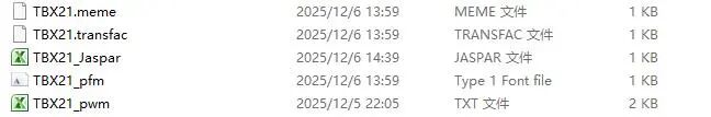 我们先下载了TBX21 Motif 不同格式文件,如下图所示。这些文件都可以用Notepad或者Excel打开,查看内容。