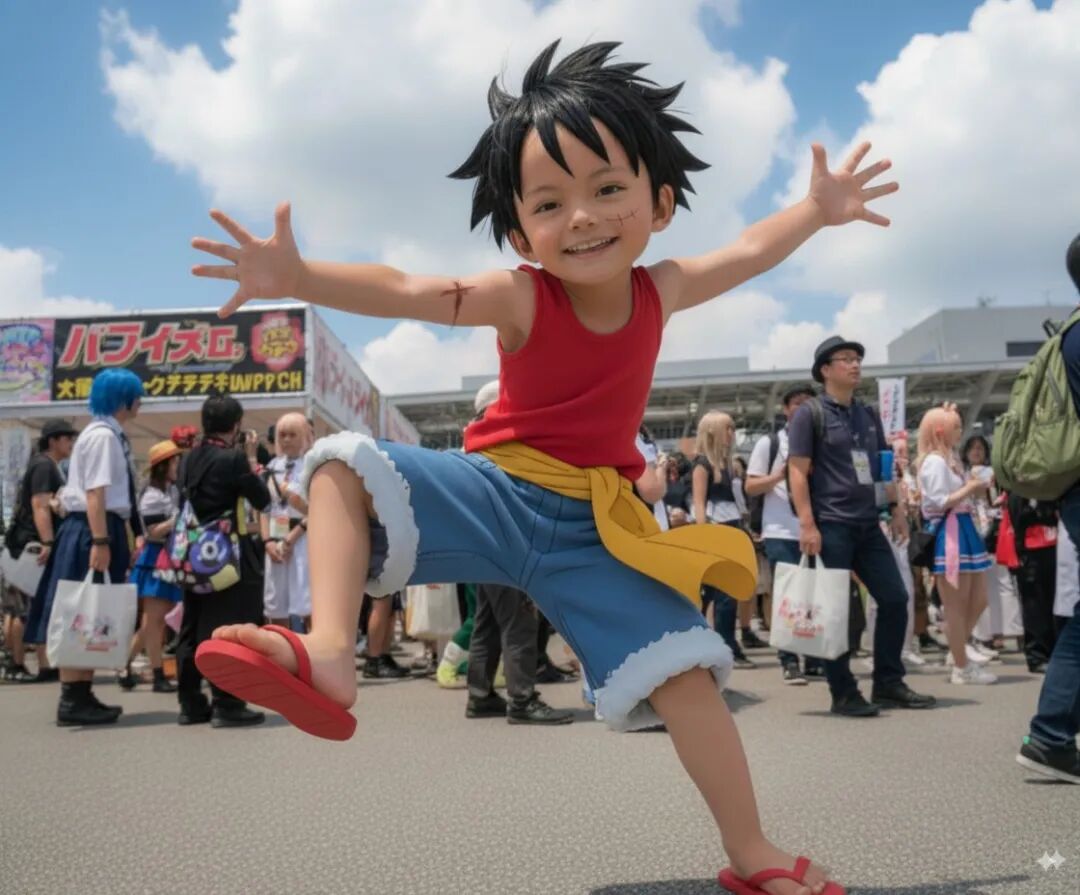 我们继续沿用上面路飞的照片,然后让Nano Banana为我们生成基于该照片的另外一个视角,这样,我们就得到了同一人物在同一场景下的不同镜头画面。