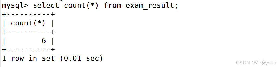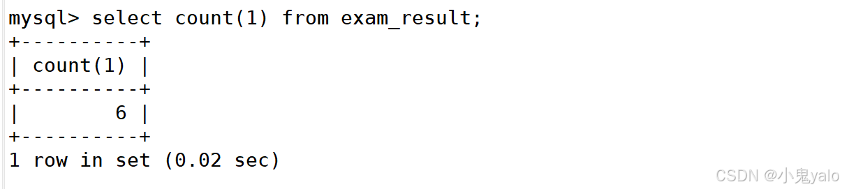 //使用*做统计 mysql> select count(*) from exam_result;