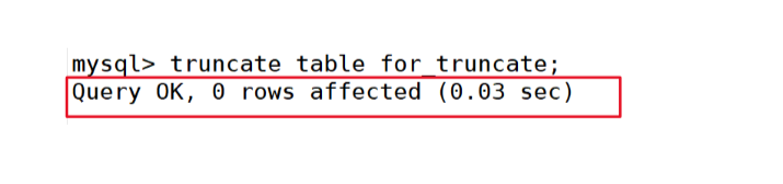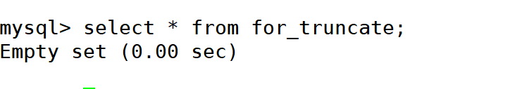 mysql> truncate table for_truncate;