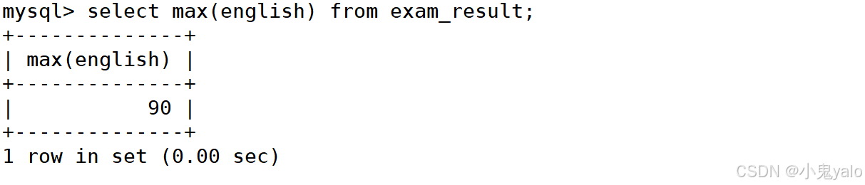 mysql> select max(english) from exam_result;