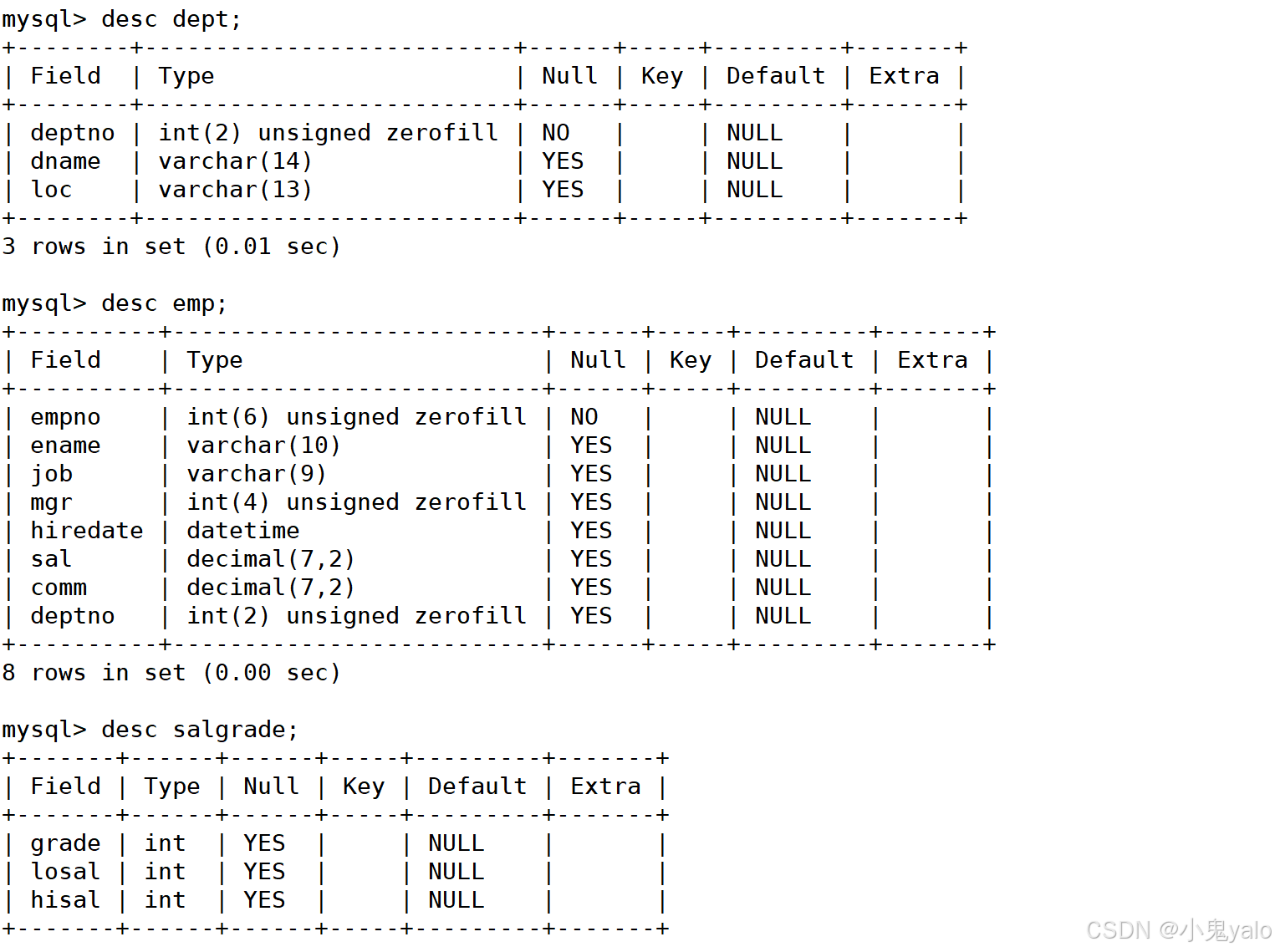 ---ASC 升序(从小到大) ---DESC 降序(从大到小) ---默认为ASC select ...... from table_name [where...] order by column [ASC|DESC];