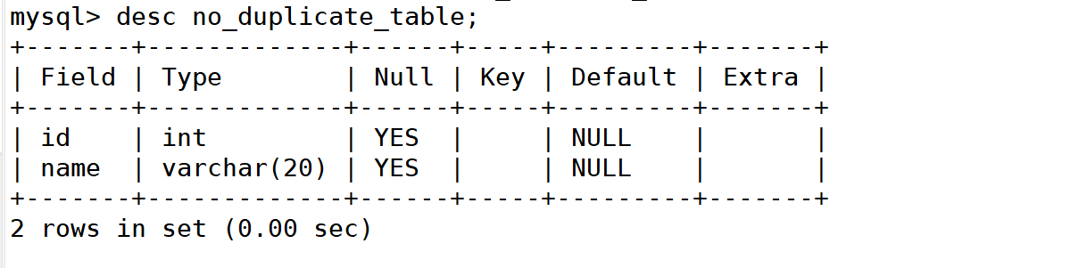 mysql> create table no_duplicate_table like duplicate_table;