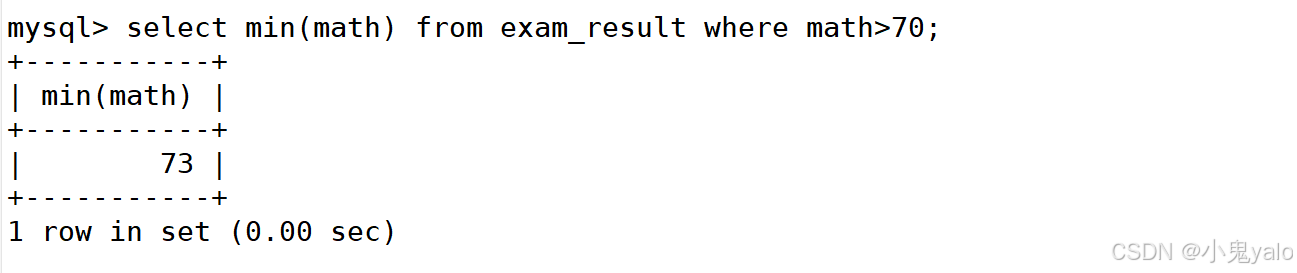 mysql> select min(math) from exam_result where math>70;