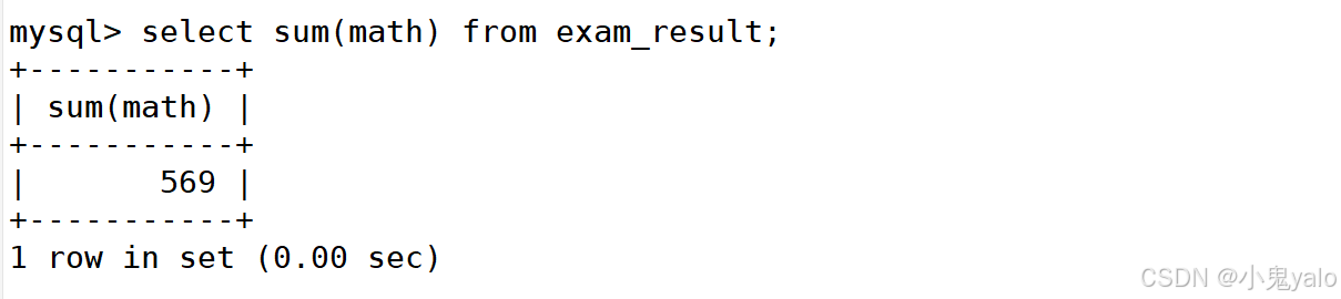 mysql> select sum(math) from exam_result;