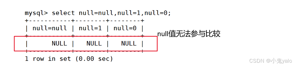 null和null的比较,=和<=>的比较: