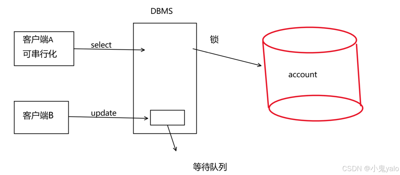 串行化(serializable):这是事务的最高隔离级别,它通过强制事务排序,使之不可能相互冲突,从而解决了幻读的问题,它在每个读的数据行上面加上共享锁。但是可能会导致超时和锁竞争。(这种隔离级别太极端,实际生产一般不使用)