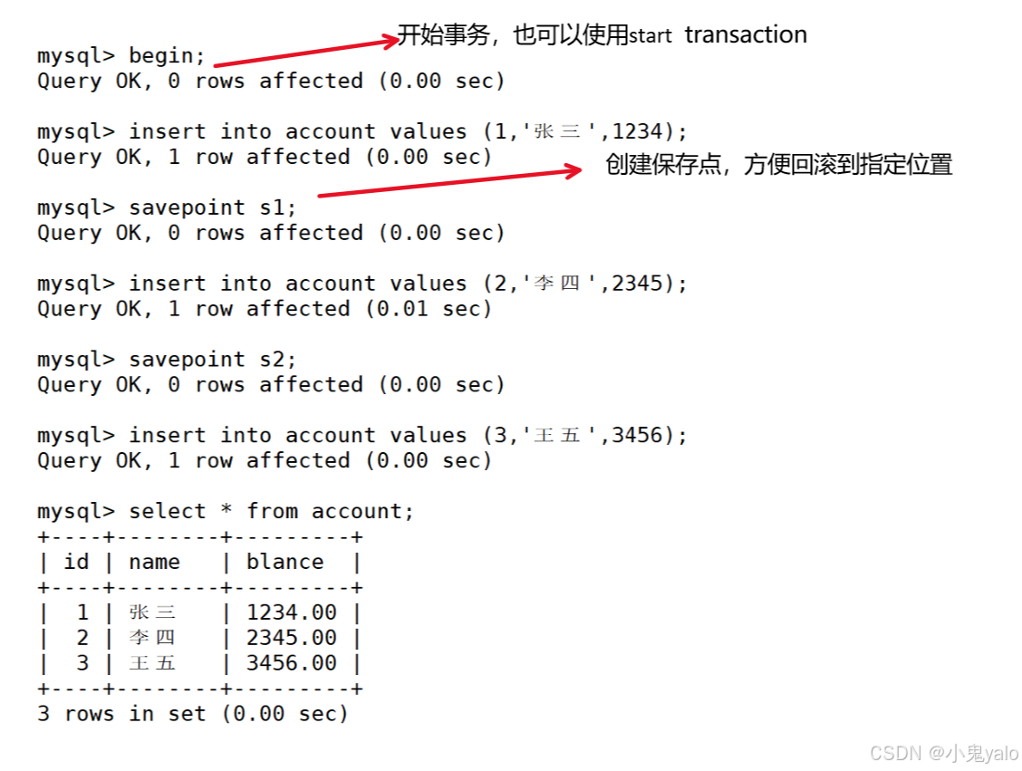 演示:事务的开始与回滚