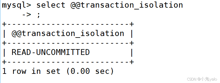 mysql> set global transaction isolation level read uncommitted; //transaction 事务 //isolation 隔离 //level 级别 //read uncommitted 读未提交