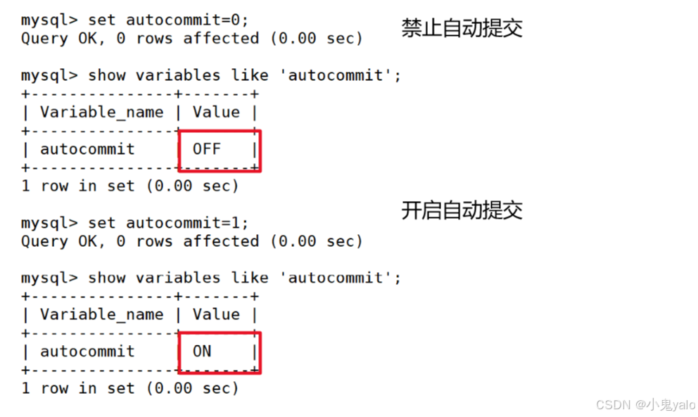 用set来改变MySQL的自动提交模式: