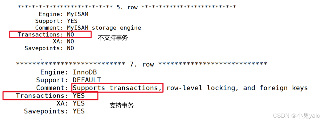 show engines; --表格显示 show engines\G --行显示