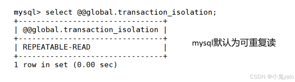 mysql> select @@global.transaction_isolation; --查看全局隔离级别