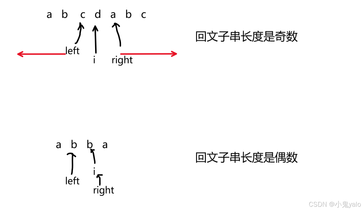 left--,right++。最后回文子串的长度就是right-left-1。