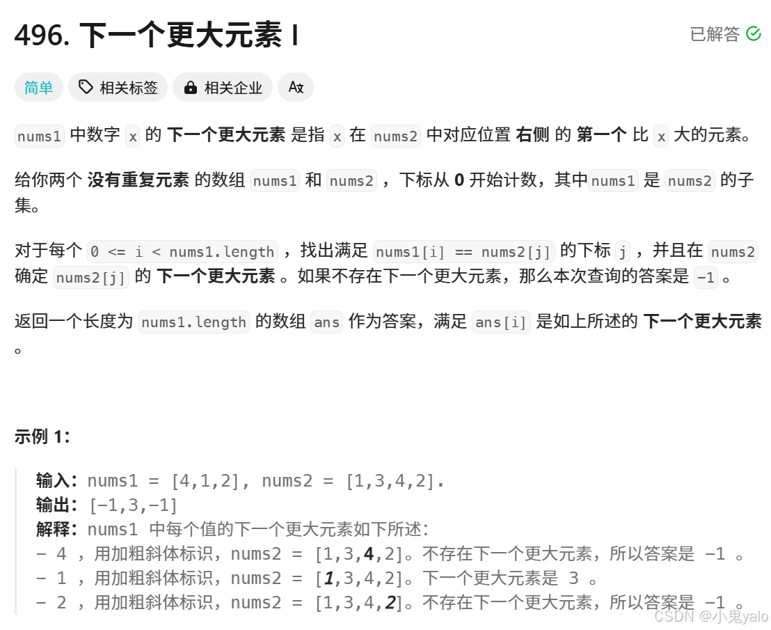 题目链接:496. 下一个更大元素 I - 力扣(LeetCode)