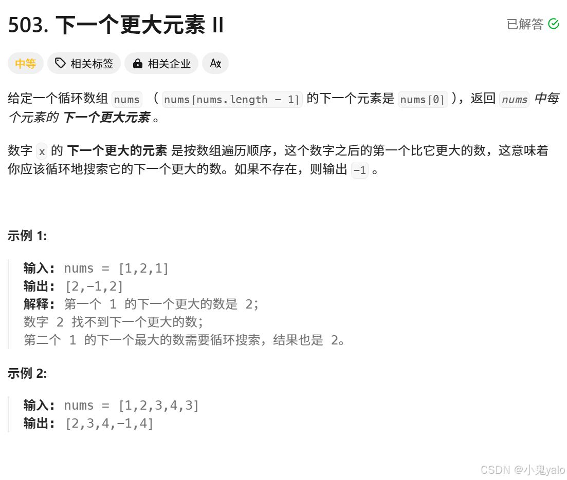 };题目链接:503. 下一个更大元素 II - 力扣(LeetCode)