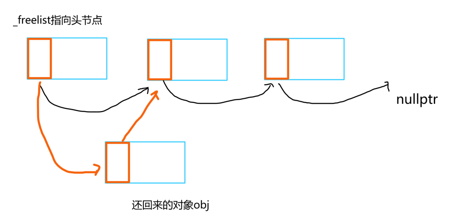 void* _freelist = nullptr;//自由链表,管理还回来的内存