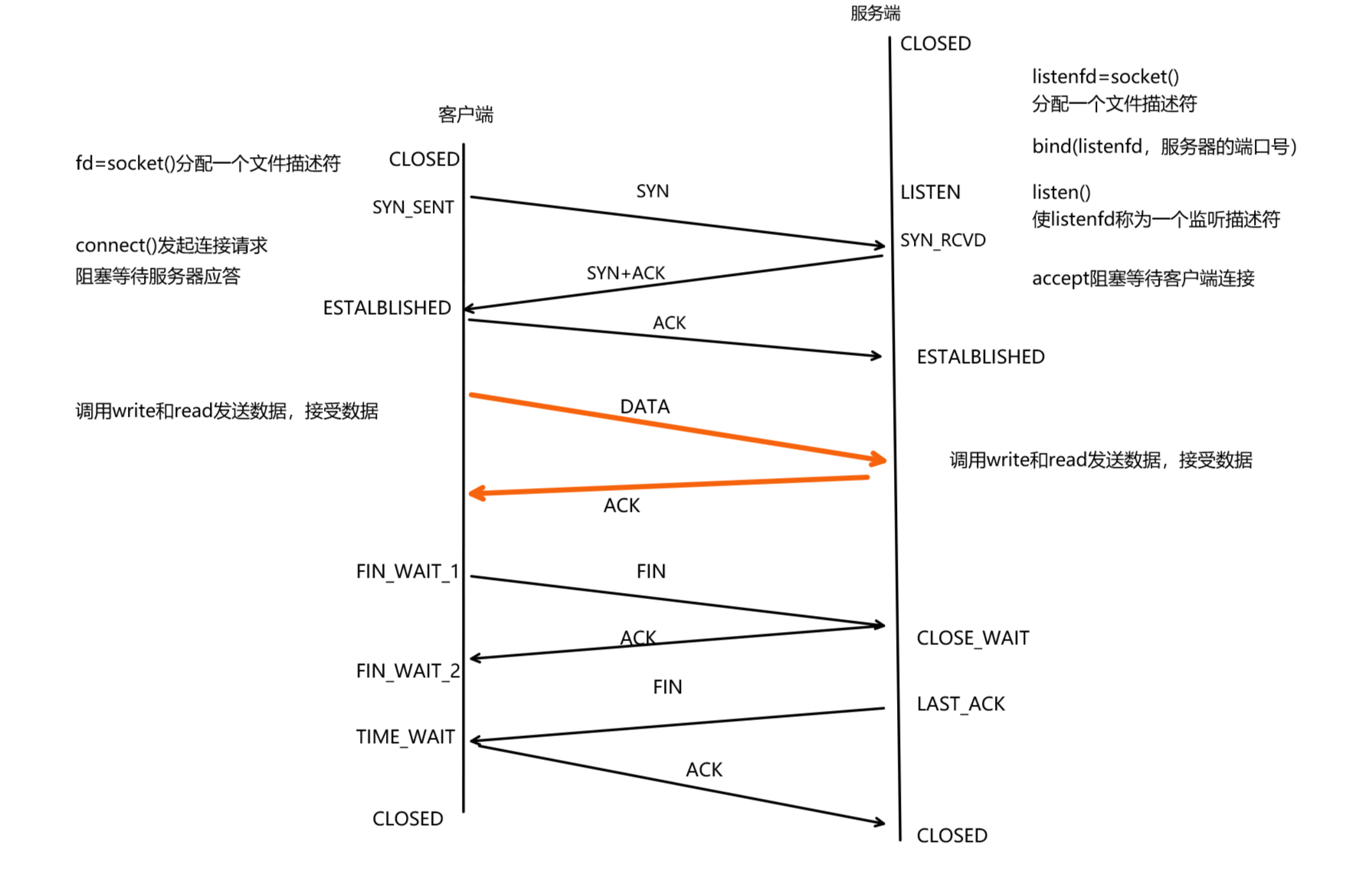 四次挥手也是由操作系统自动完成的。本质是建立双方断开连接的共识。客户端(服务端)认为要发送的数据已经发送完了,调用close(fd)断开连接。