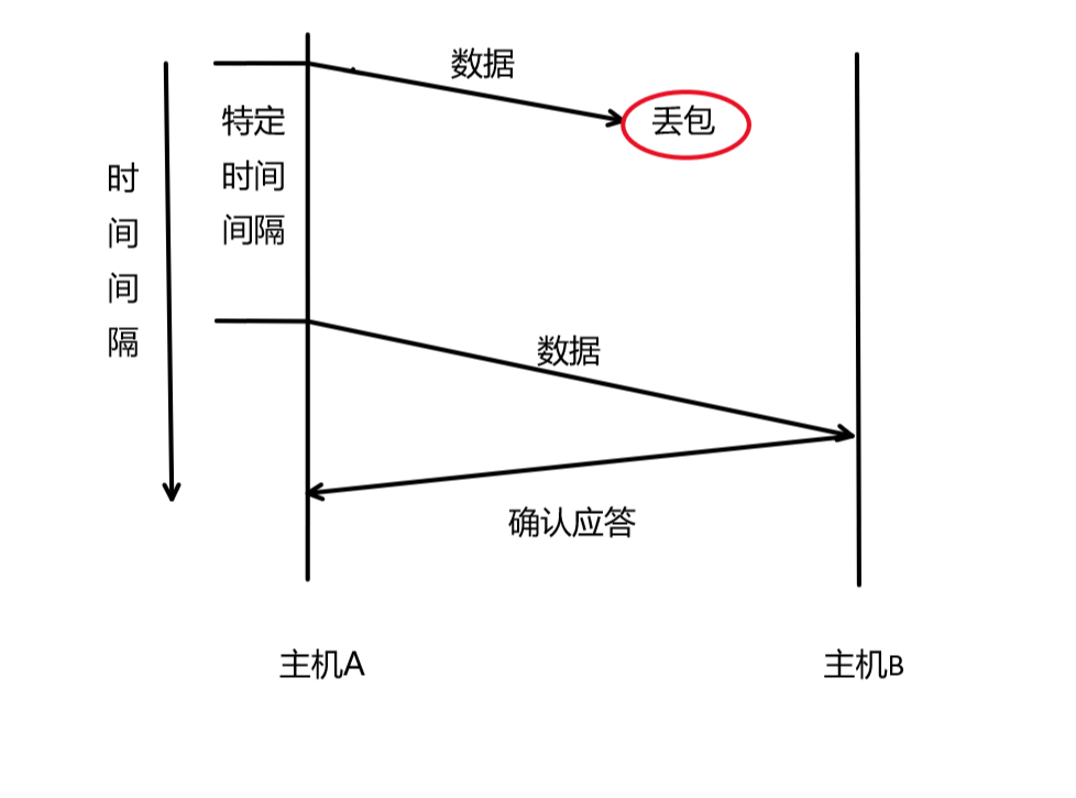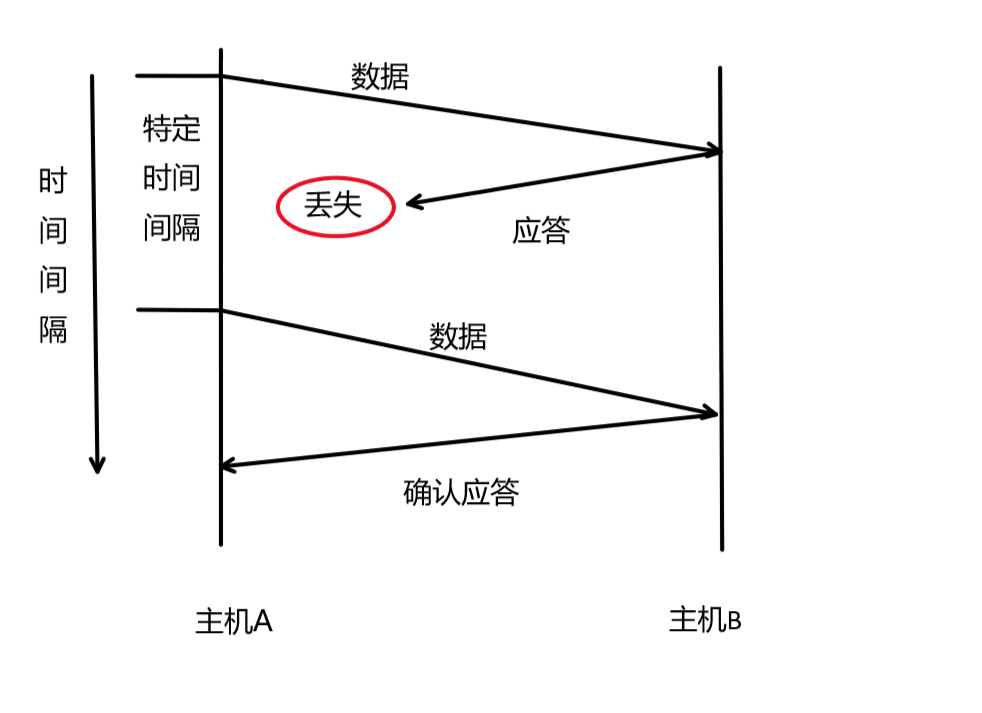 如果主机A在特定的时间间隔内没有收到B发来的确认应答,就会重发数据。