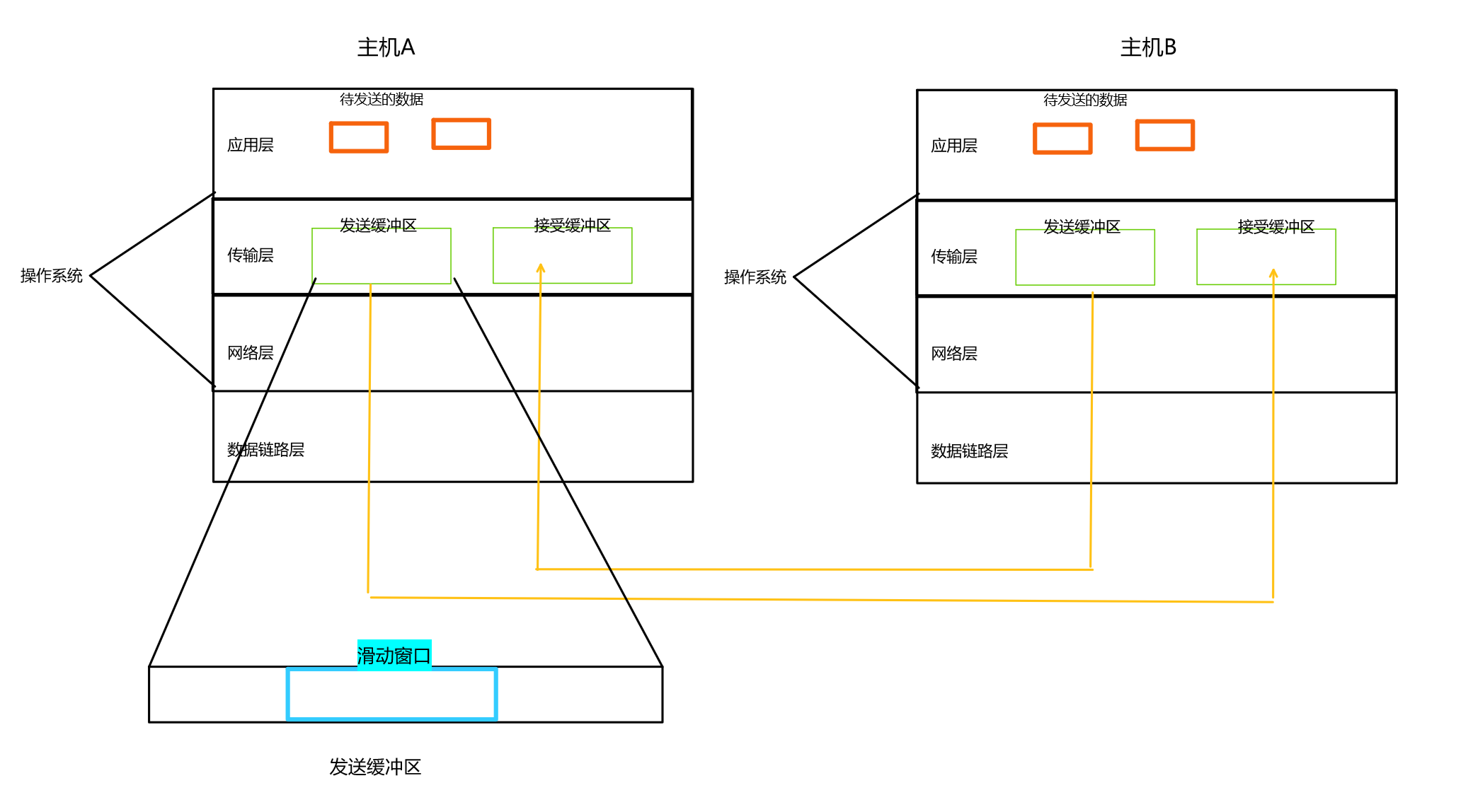 在前面提到过,TCP有自己的接受缓冲区和发送缓冲区。如下图所示: