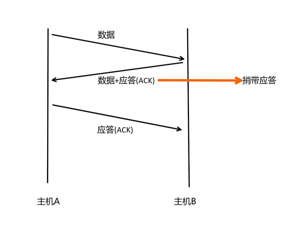 但是有时候主机B也要给主机A发送数据,所以在主机B给主机A发送数据的时候,会携带上应答。