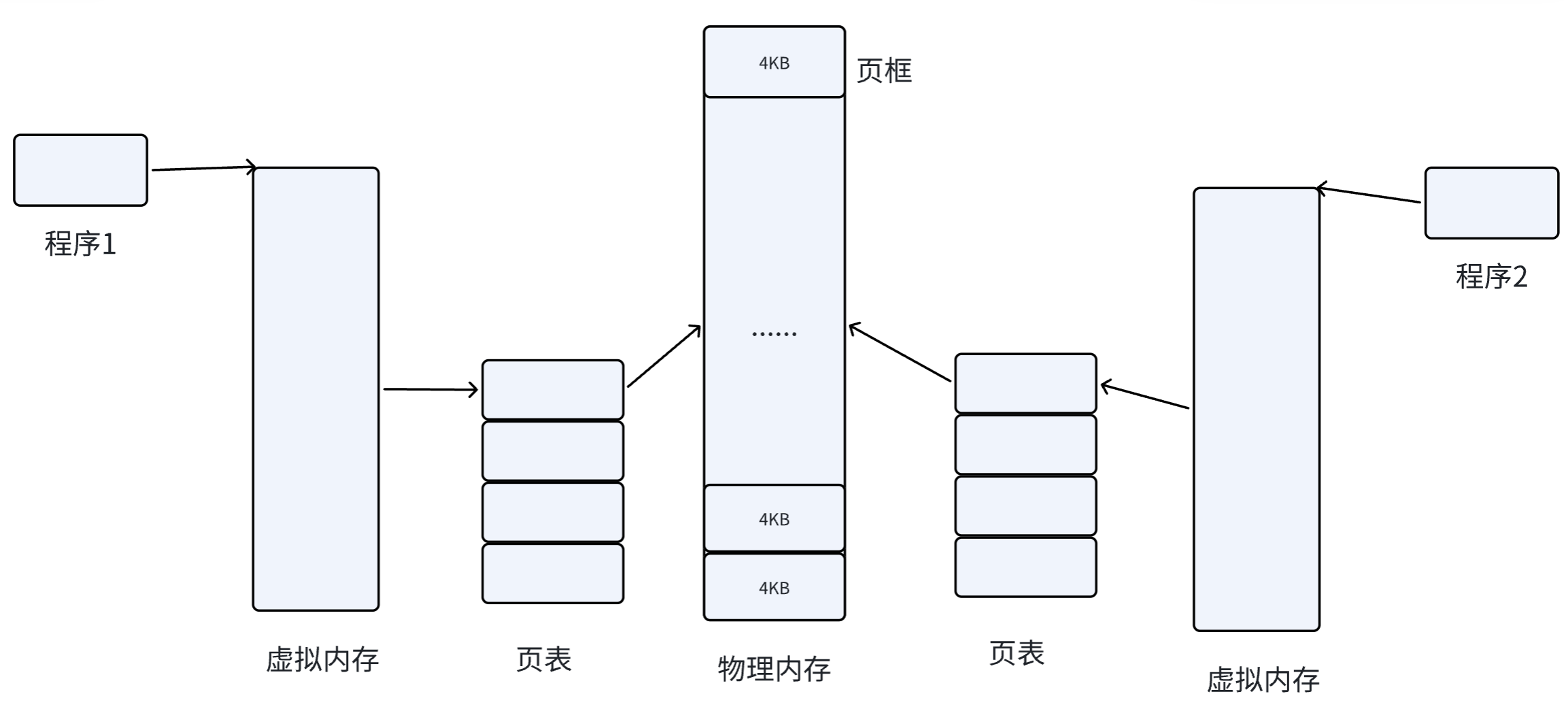 操作系统通过将虚拟地址空间和物理内存地址之间建立映射关系,也就是页表,这张表上记录了每一对页和页框的映射关系,能让CPU间接的访问物理内存地址。