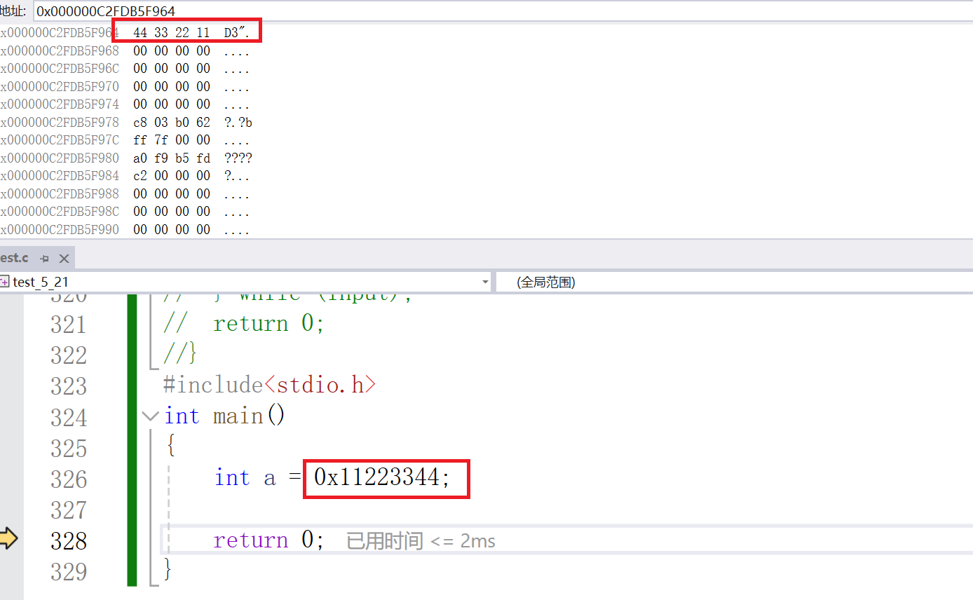 通过上面的图片中标红的地方,我们看出,在代码中,我们给a的地址是0x11223344,为什么在调试的时候就变成了44332211呢?这是为什么?