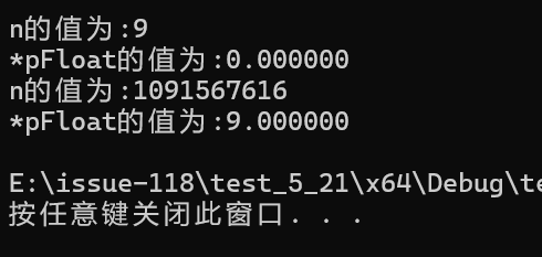 printf("*pFloat的值为:%f\n", *pFloat);