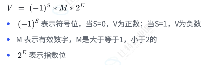 对于32位的浮点数(float),最⾼的1位存储符号位S,接着的8位存储指数E,剩下的23位存储有效数字 M