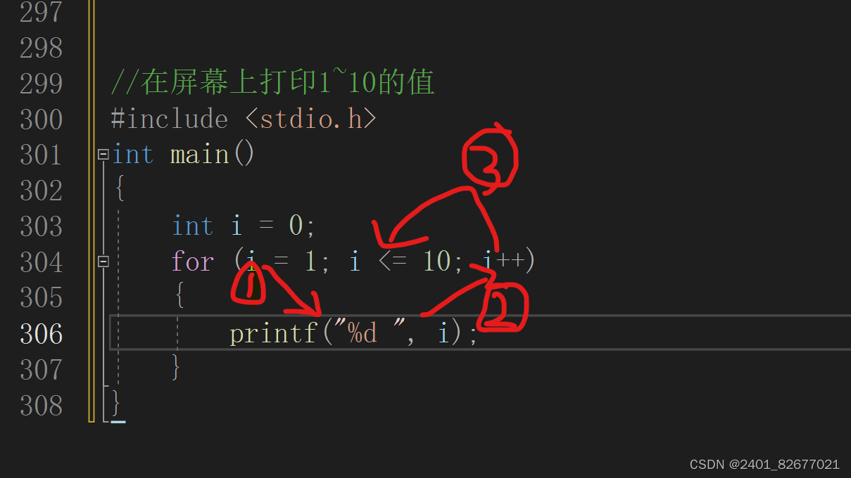 for(表达式1;表达式2;表达式3) 语句//如果循环体想要包含多条语句,可以加上大括号