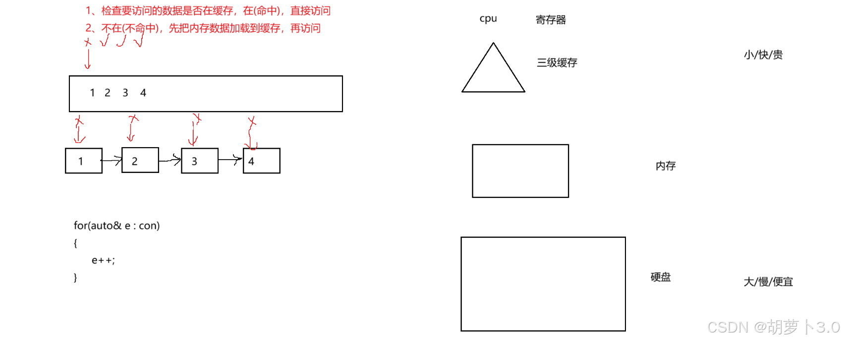 数据访问 | CPU高速缓存命中也不错,数据访问效率高 | 随机访问支持,但是相对vector不够极致,大量[ ] 访问,还得是vector |