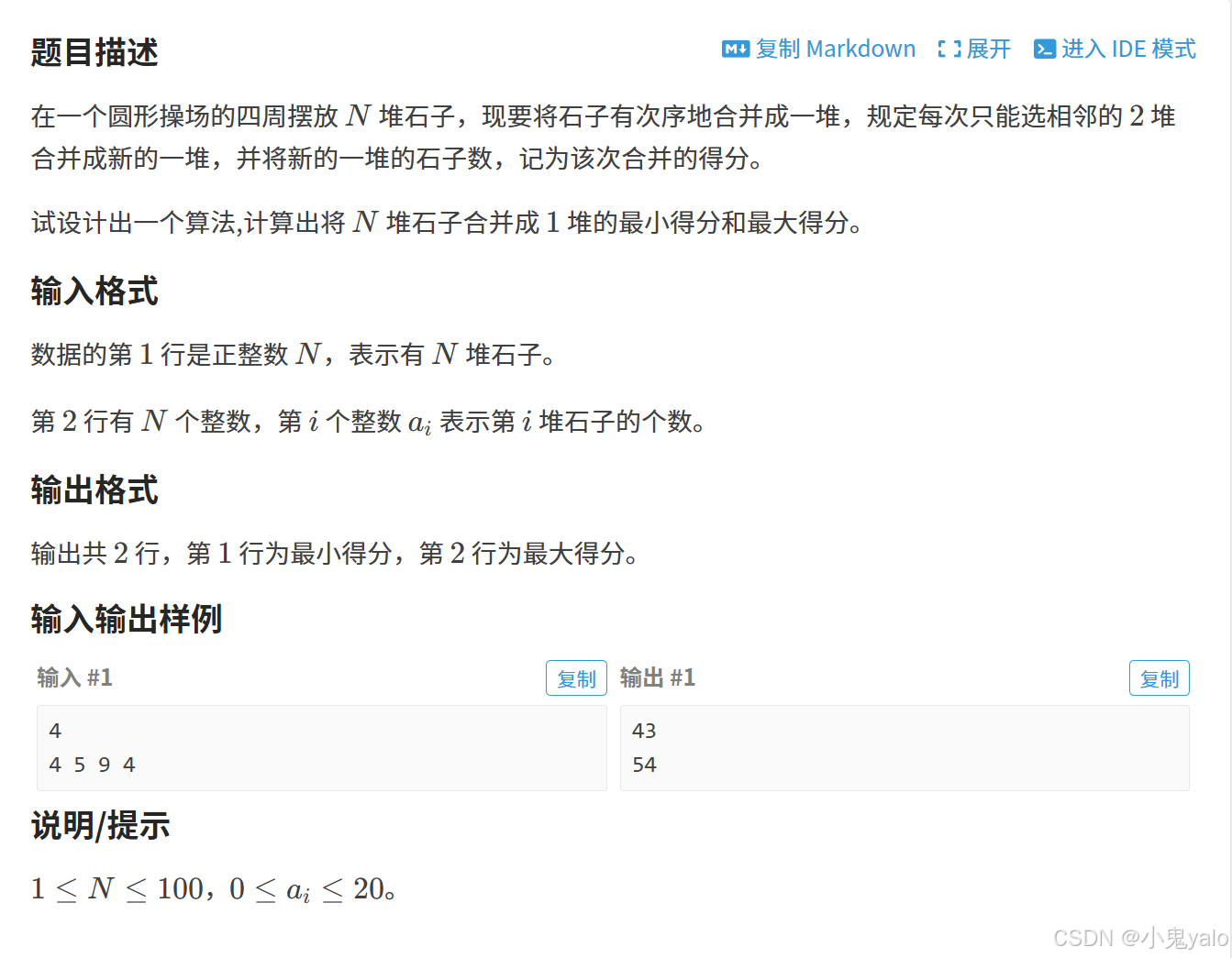 }题目连接:P1880 [NOI1995] 石子合并 - 洛谷