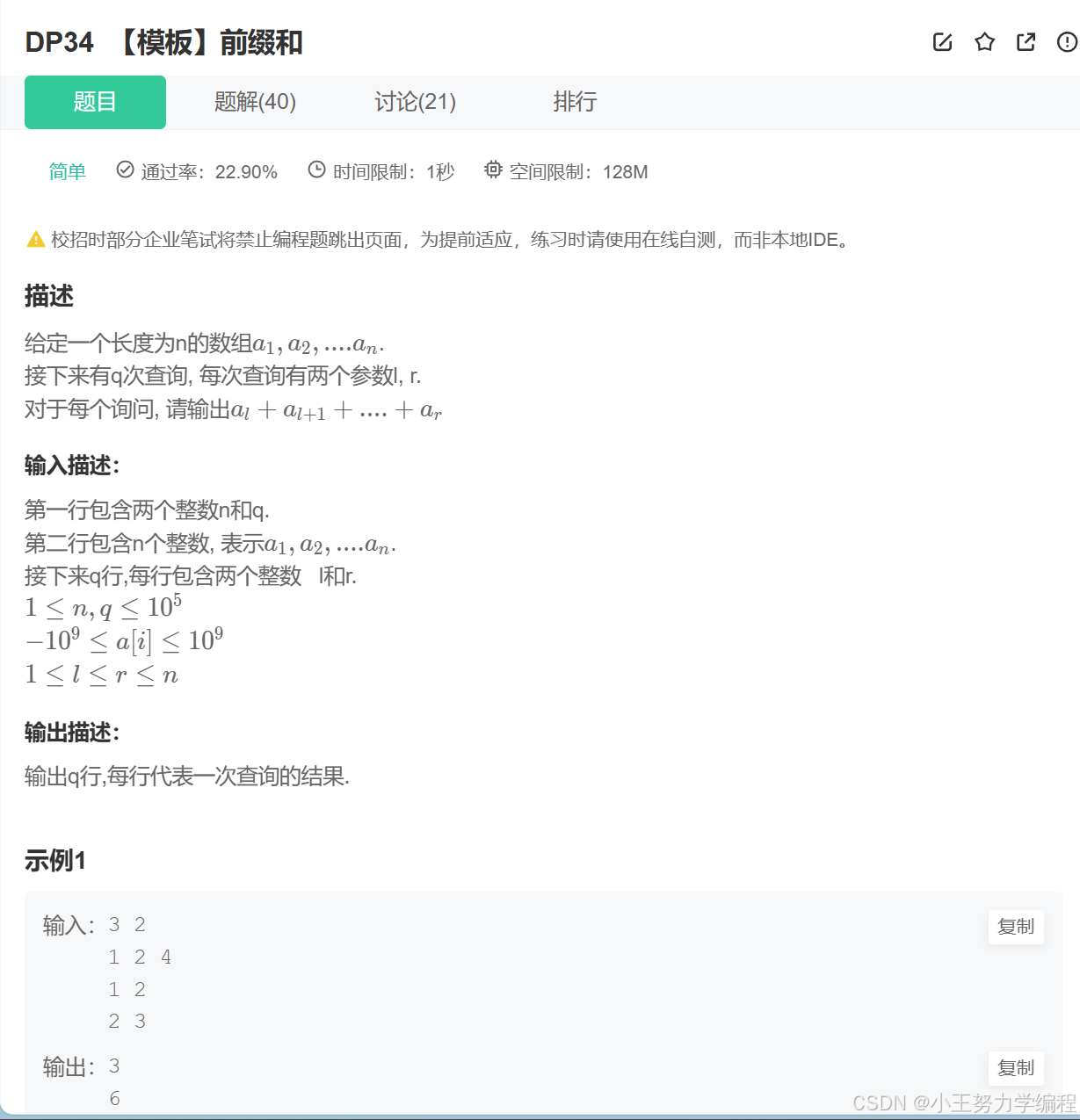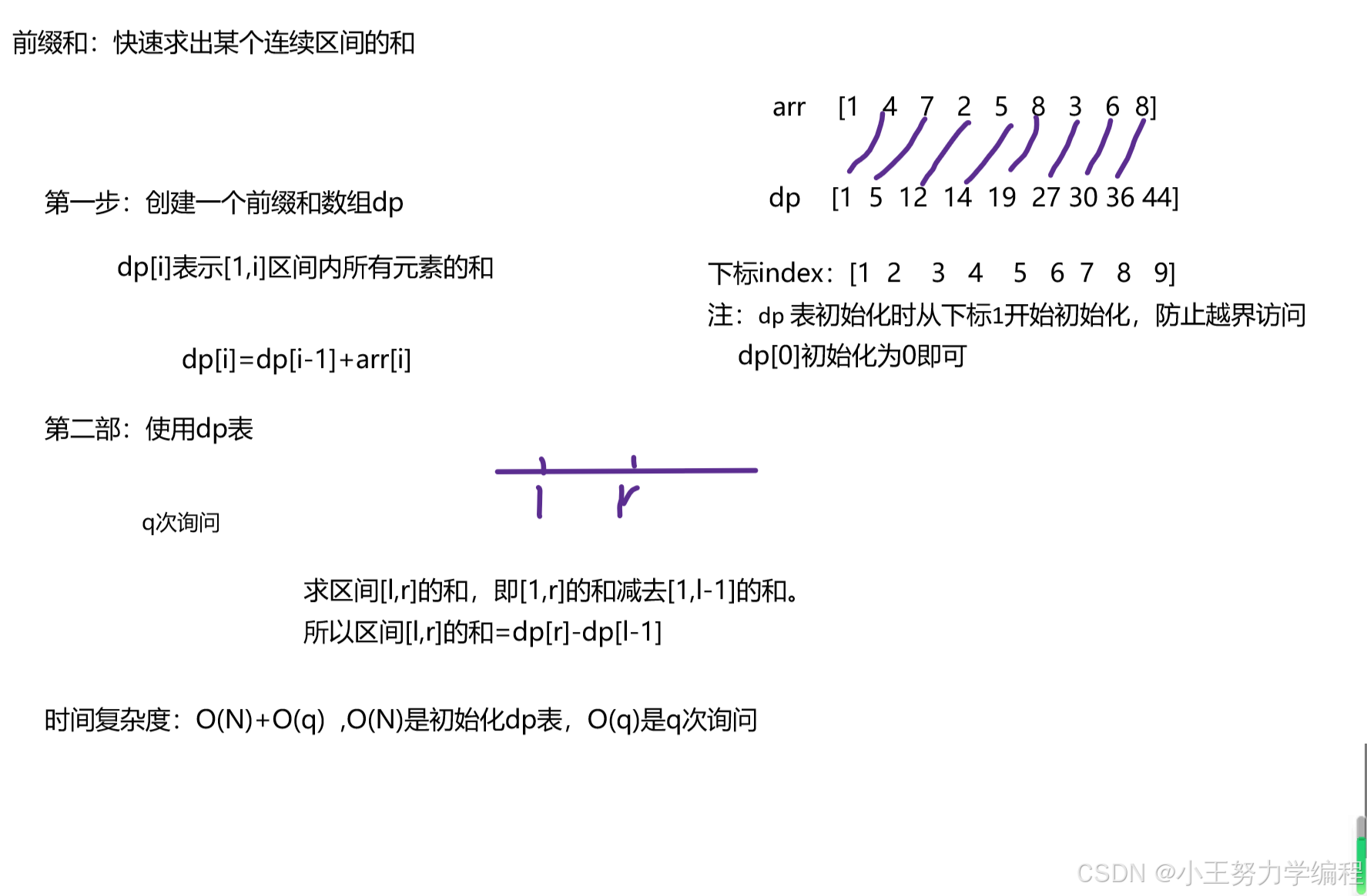 给你一个数组arr,进行q次询问,每次询问数组区间[l,r]的和。