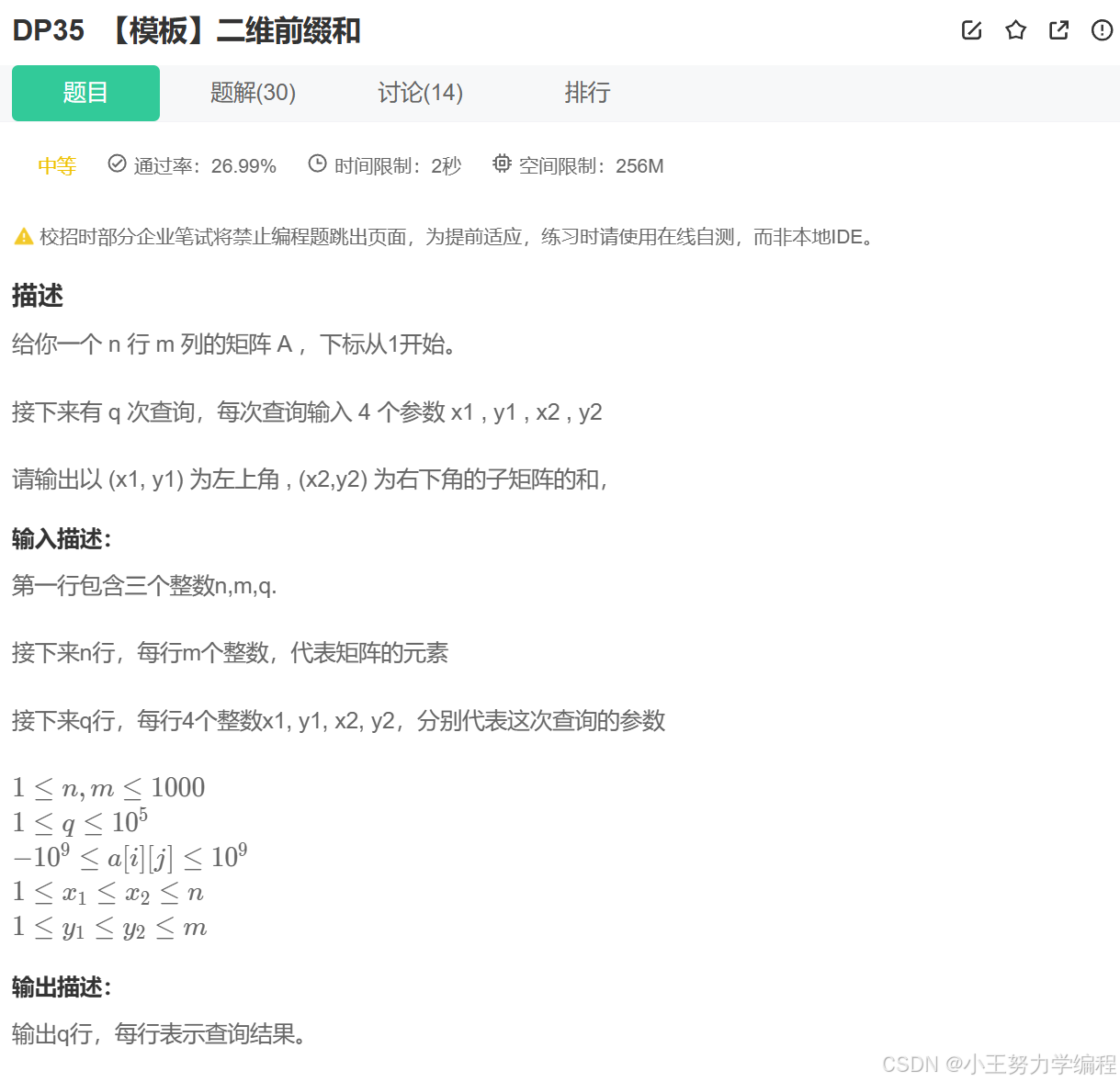 解法一:暴力解法—>模拟该过程,遍历矩阵,时间复杂度O(n*m*q)