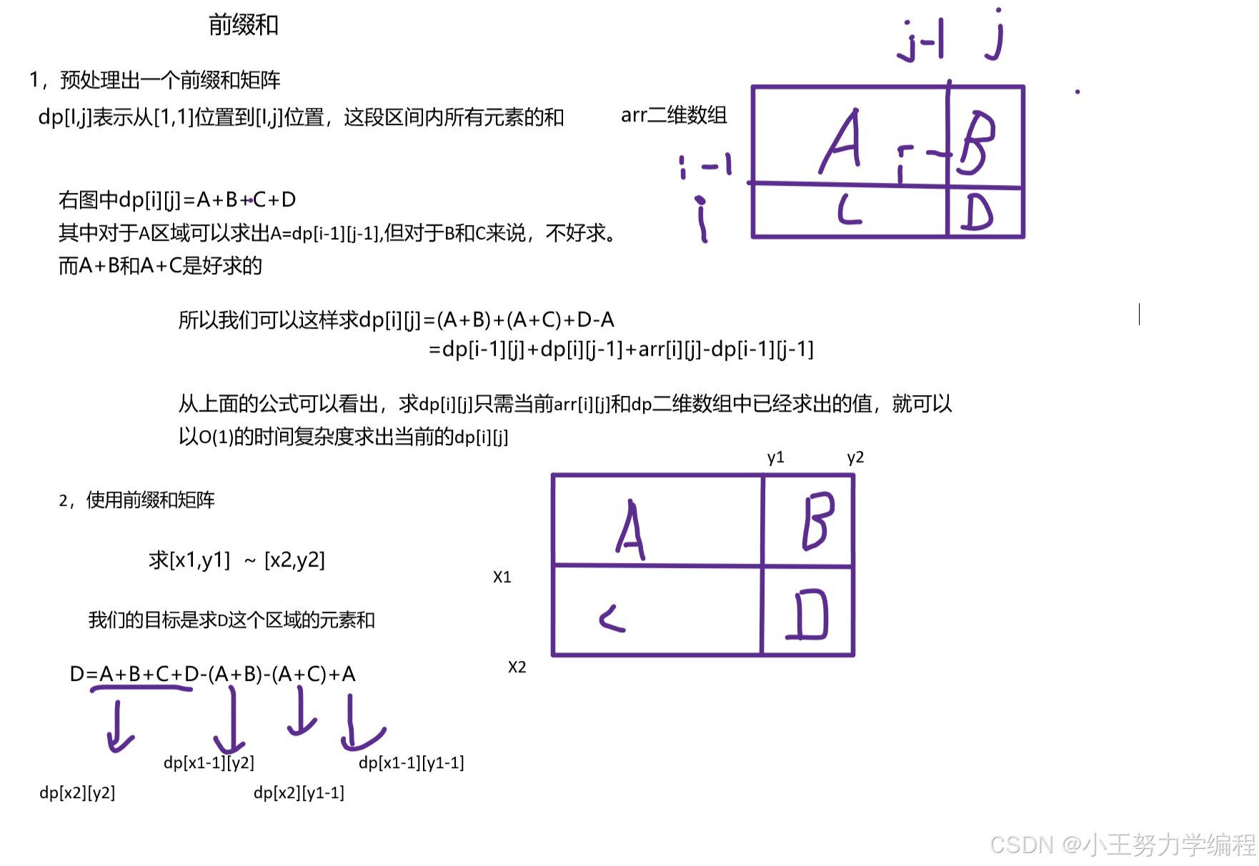 解法二:前缀和矩阵 图示: