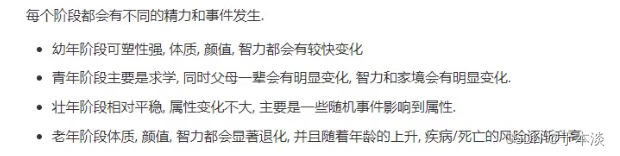 我们将人的一生分为多个阶段,并且每年进行一种随机事件。