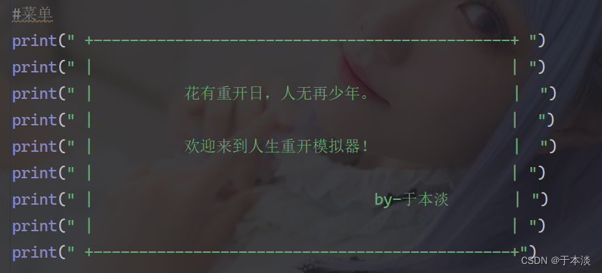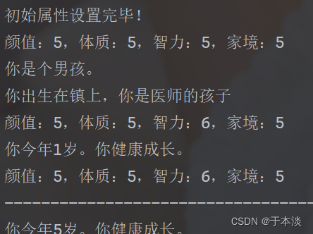 info = f"你今年{age}岁。"接下来我们开始写事件,分多种属性触发,增加我们的随机性: