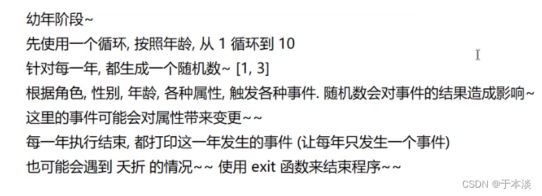 首先,遍历我们的幼年年龄,对每一年进行一个随机事件。