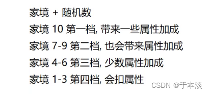 同时根据家境的初始值和随机数分成不同档次,并且根据家境不同带来属性加成。