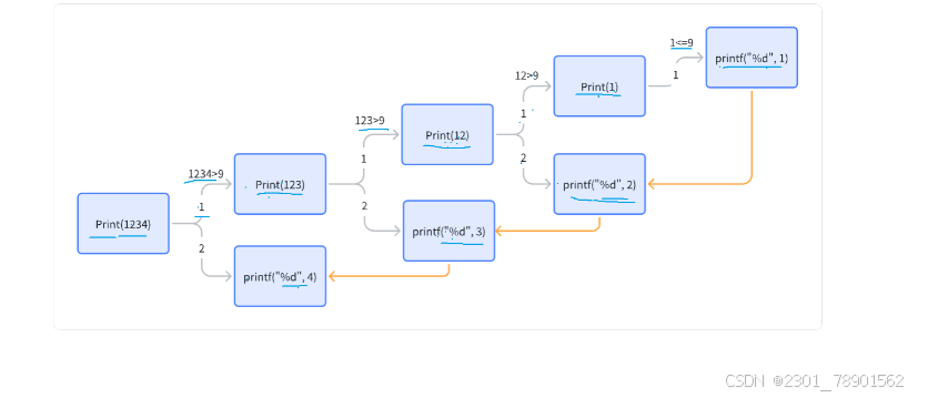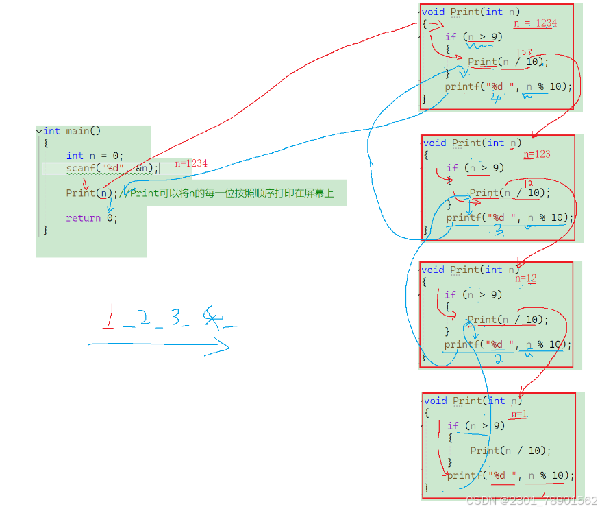 Print( 1234 ) ==>Print( 123 ) + printf ( 4 ) ==>Print( 12 ) + printf ( 3 ) ==>Print( 1 ) + printf ( 2 ) ==> printf(1)