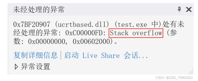 上述就是⼀个简单的递归程序,只不过上⾯的递归只是为了演⽰递归的基本式,不是为了解决问 题,代码最终也会陷⼊死递归,导致栈溢出(Stack overflow)。那玩什么会出现栈溢呢?这是因为代码运行会向内存申请空间,而死递归导致向内存申请空间超过导致栈溢出。