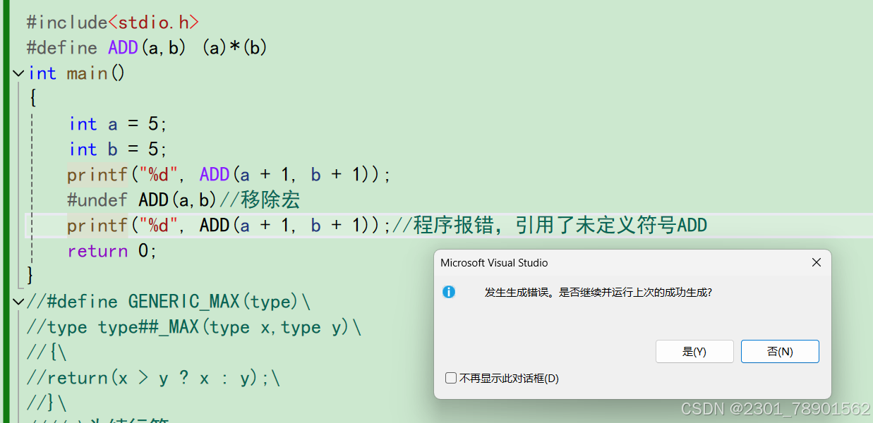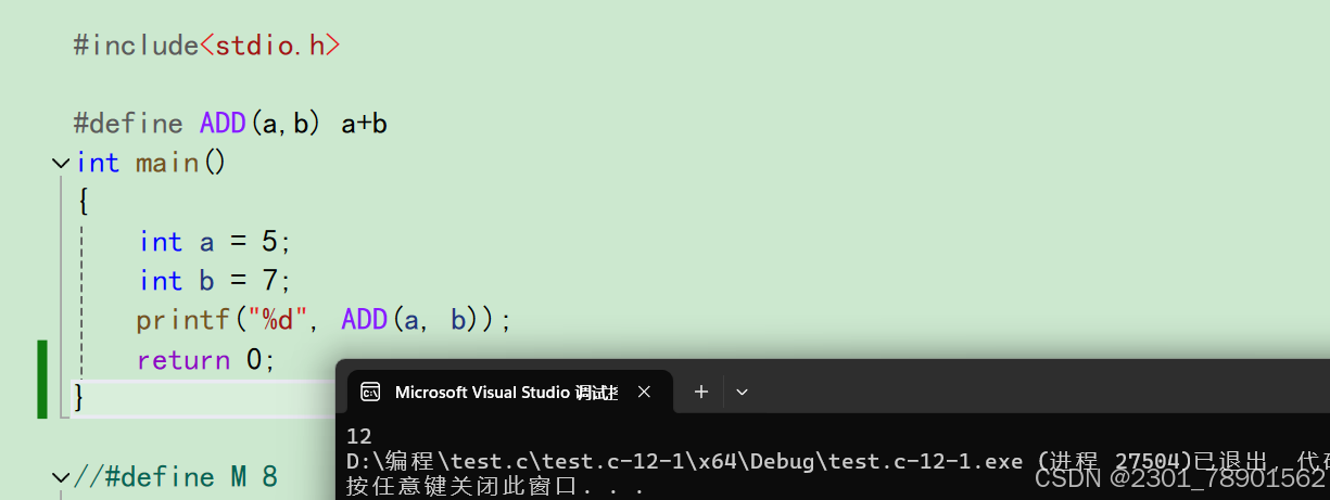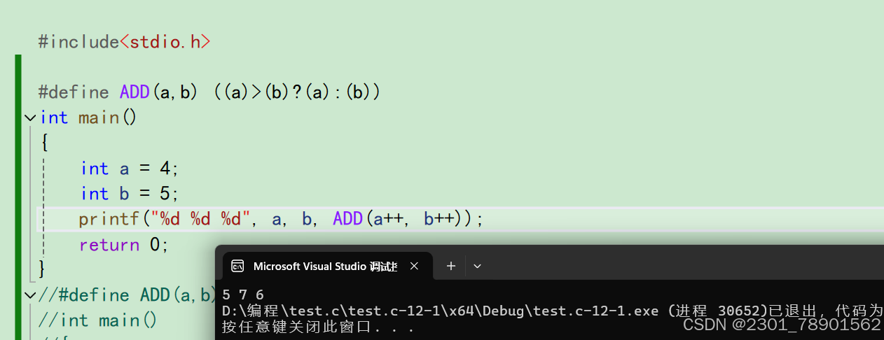 我们定义了一个宏ADD(a,b),又因为宏允许把参数替换到⽂本中,所以这个宏ADD(a,b)可以计算传入宏的两个参数a,b的和